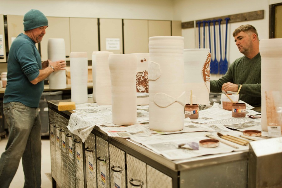 Bill recently completed this commission for a health care client. The images relate to his wall reliefs, but these are created from wood and clay, and measure close to three feet square.
